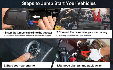 A Must Have for Every Driver: This jump starter is capable of starting all 12V battery vehicles with up to 5.0L gas and 3.0L diesel engines. With this in-hand, there's no need to wait for breakdown assistance or ask for help from a stranger.